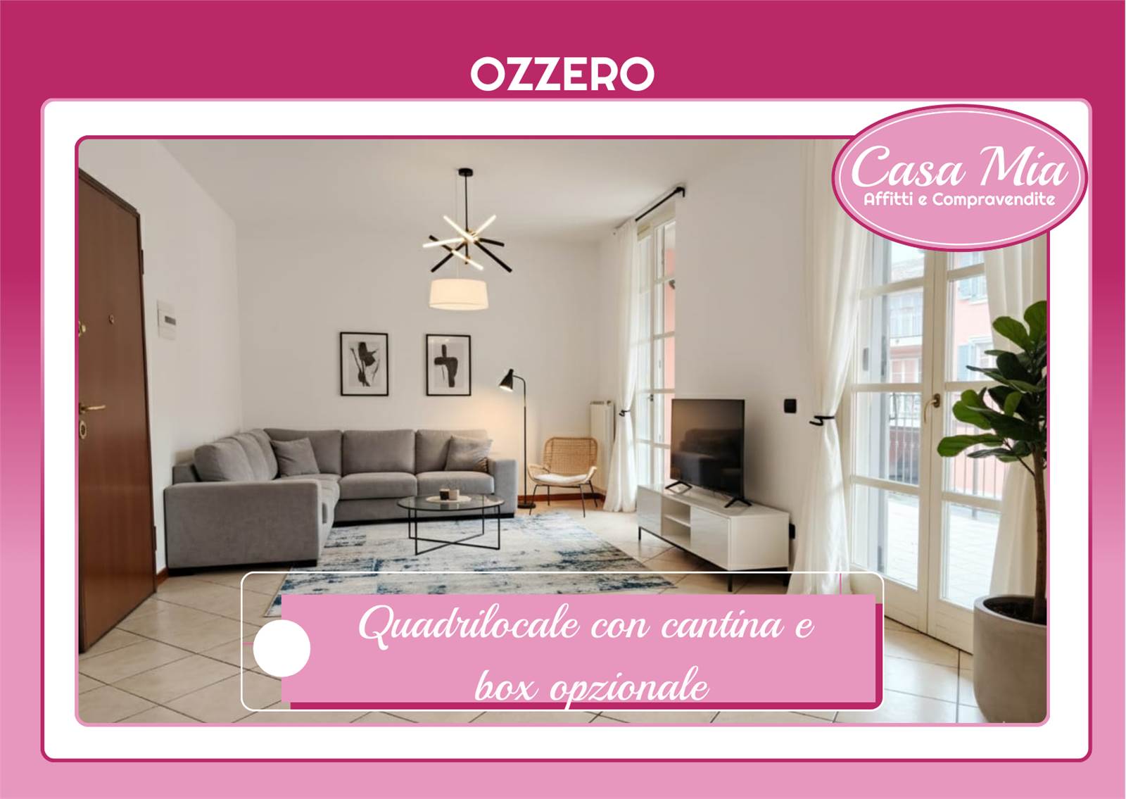 Casa Mia Affitti e Compravendite propone in VENDITA ESCLUSIVA, ad Ozzero, a pochi minuti da Abbiategrasso, ampio e luminoso Quadrilocale di 108 mq, inserito in un contesto recente, tranquillo e ben abitato.